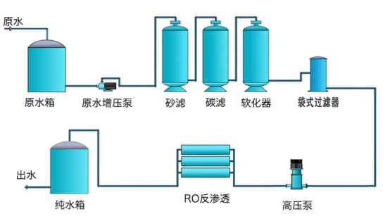 以常見的超純水處理工藝為例,大流量多袋式過濾器可以用在反滲透設(shè)備之前和多介質(zhì)過濾之后,主要起到的是精密過濾和保護(hù)過濾的作用。